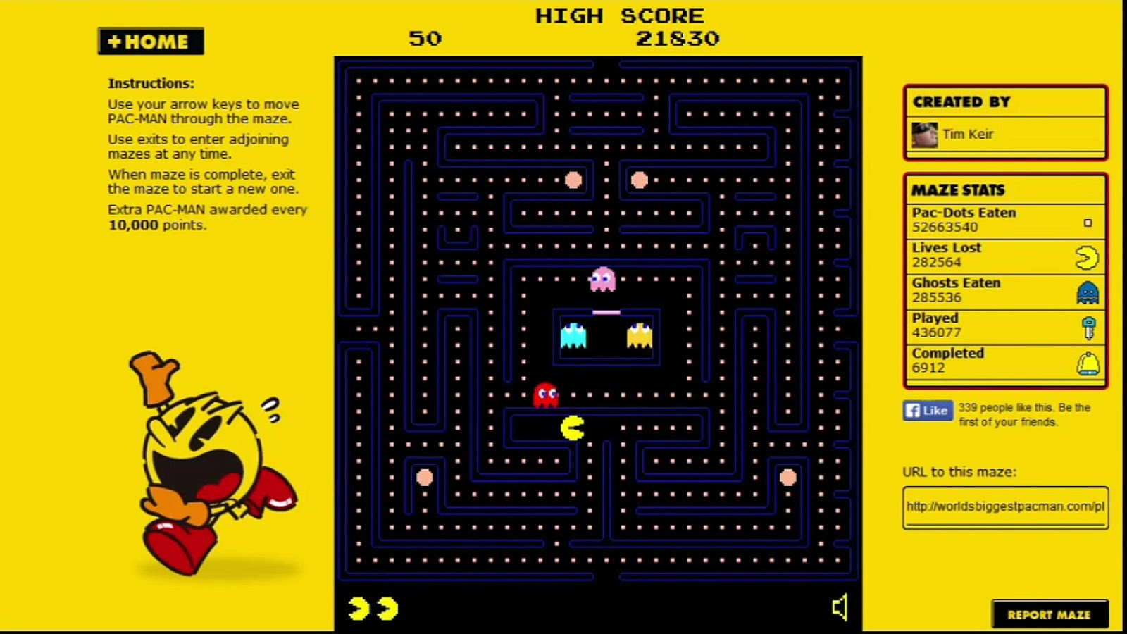 No site oficial do jogo worlds biggest pacman Você terá uma infinidade de labirintos para se divertir fugindo de fantasmas.