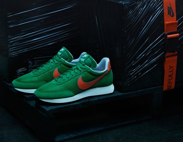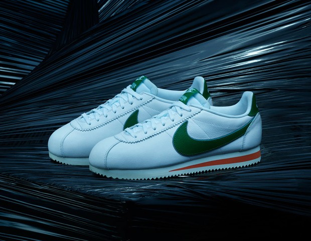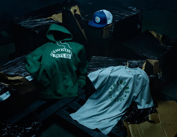 A coleção Nike Stranger Things traz em destaque os sneakers Cortez, Blazer e Tailwind. As cores se fixam no verde e laranja, inspirados na Hawkins High, escola em que Eleven, Dustin, Will e Lucas frequentam.