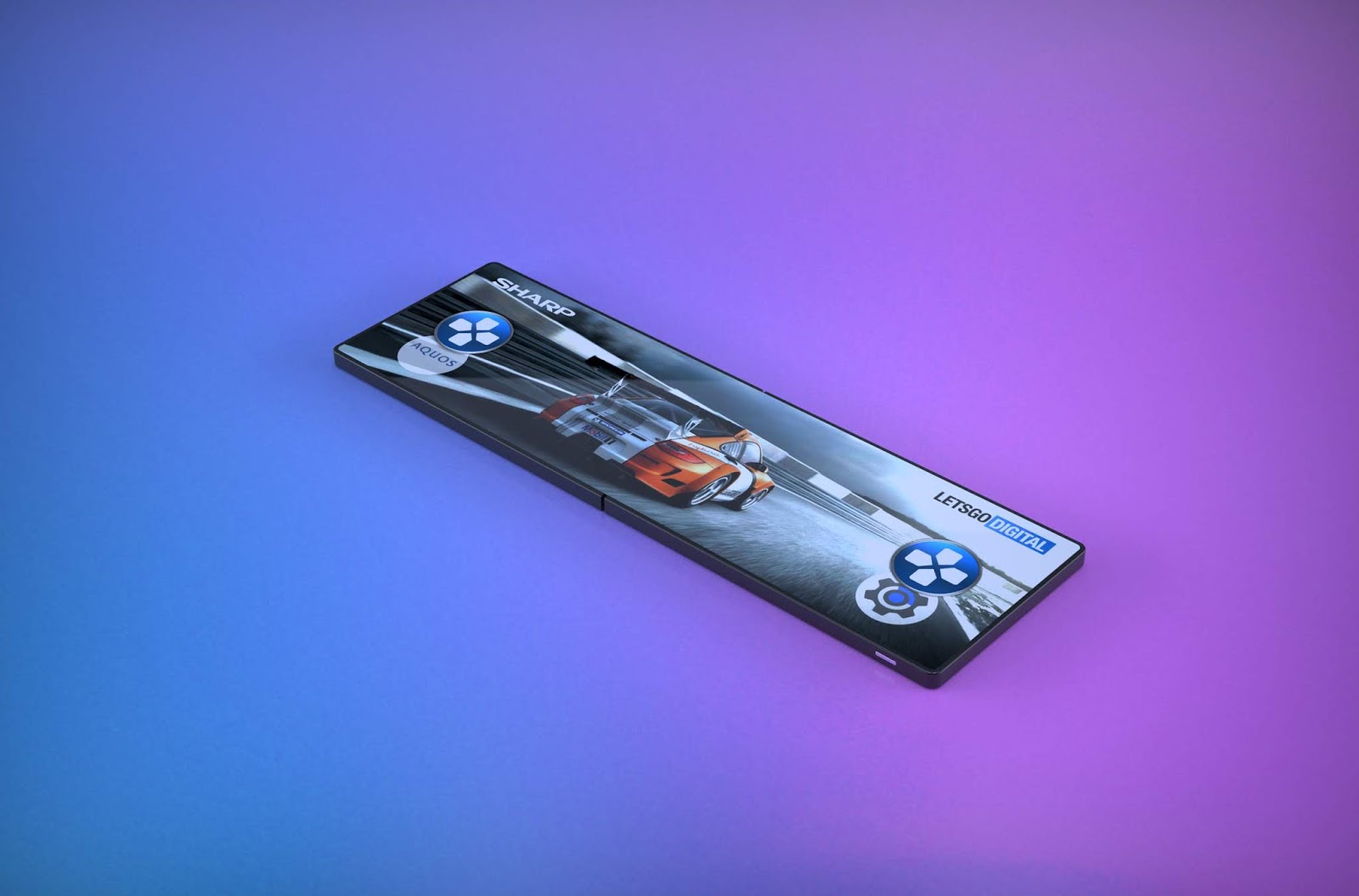 a Sharp Corporation registrou a patente para um novo dispositivo celular totalmente flexível e com enfase para jogos. A o registro de patente foi solicitado em 2017 ao Escritório de Marcas e patentes dos Estados Unidos, mas apenas em 2 de abril que a patente do novo modelo foi liberada.