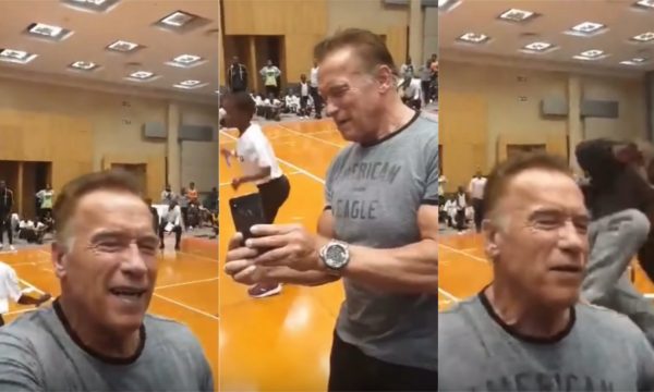 Um vídeo mostra Schwarzenegger tirando fotos com seus fãs e julgando uma competição de saltos no festival Arnold Classic Africa quando um homem surge do nada e o derruba por trás com um chute voador. Os guarda-costas do ator rapidamente imobilizam o agressor, que não teve sua identidade revelada.
